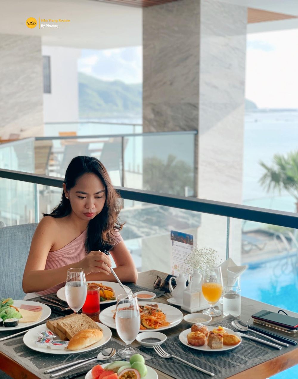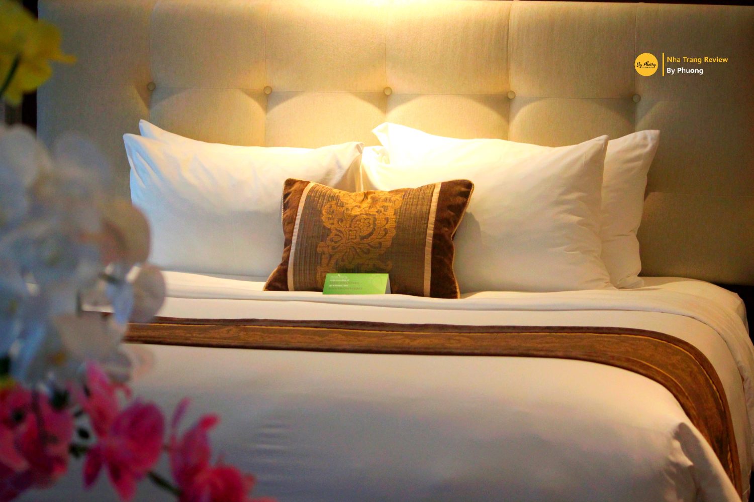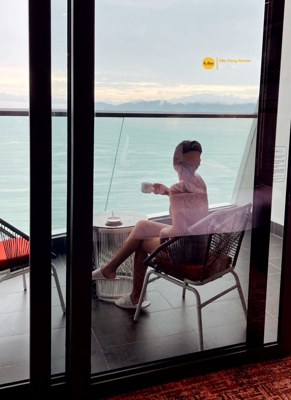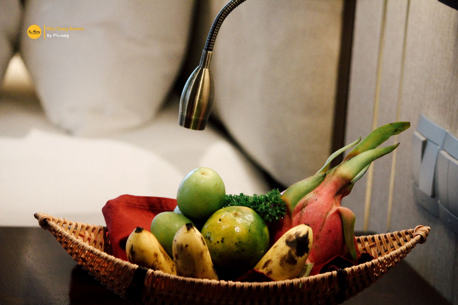 Phòng Phương lưu trú lần này là phòng Suite (2510) nằm ở tầng cao nhất của tòa nhà. Điểm nổi trội của hạng phòng này là diện tích lên đến 80m2 với giường đôi cực lớn, ban công riêng, sàn lót thảm, buồng tắm đứng và cả bồn tắm lộ thiên view biển. Ngoài ra các dịch vụ đi kèm còn có nước uống đóng chai, welcome fruit, sử dụng phòng xông hơi cùng tất cả các tiện ích hiện có của khách sạn (gym, hồ bơi vô cực, bãi biển riêng…).