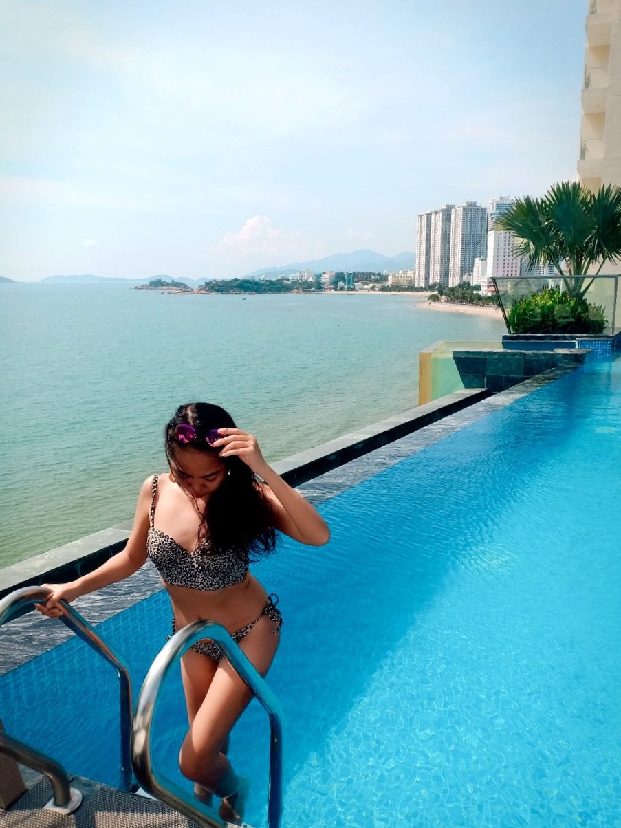 Nếu nhìn một cách tổng thể thì P có thể nói là tạm ổn. Nhưng nếu để chụp ảnh thì hồ của Boton Blue Hotel lại có có một góc chụp vô cùng xuất sắc khi lấy được trọn đường cong của bờ biển Hòn Chồng.