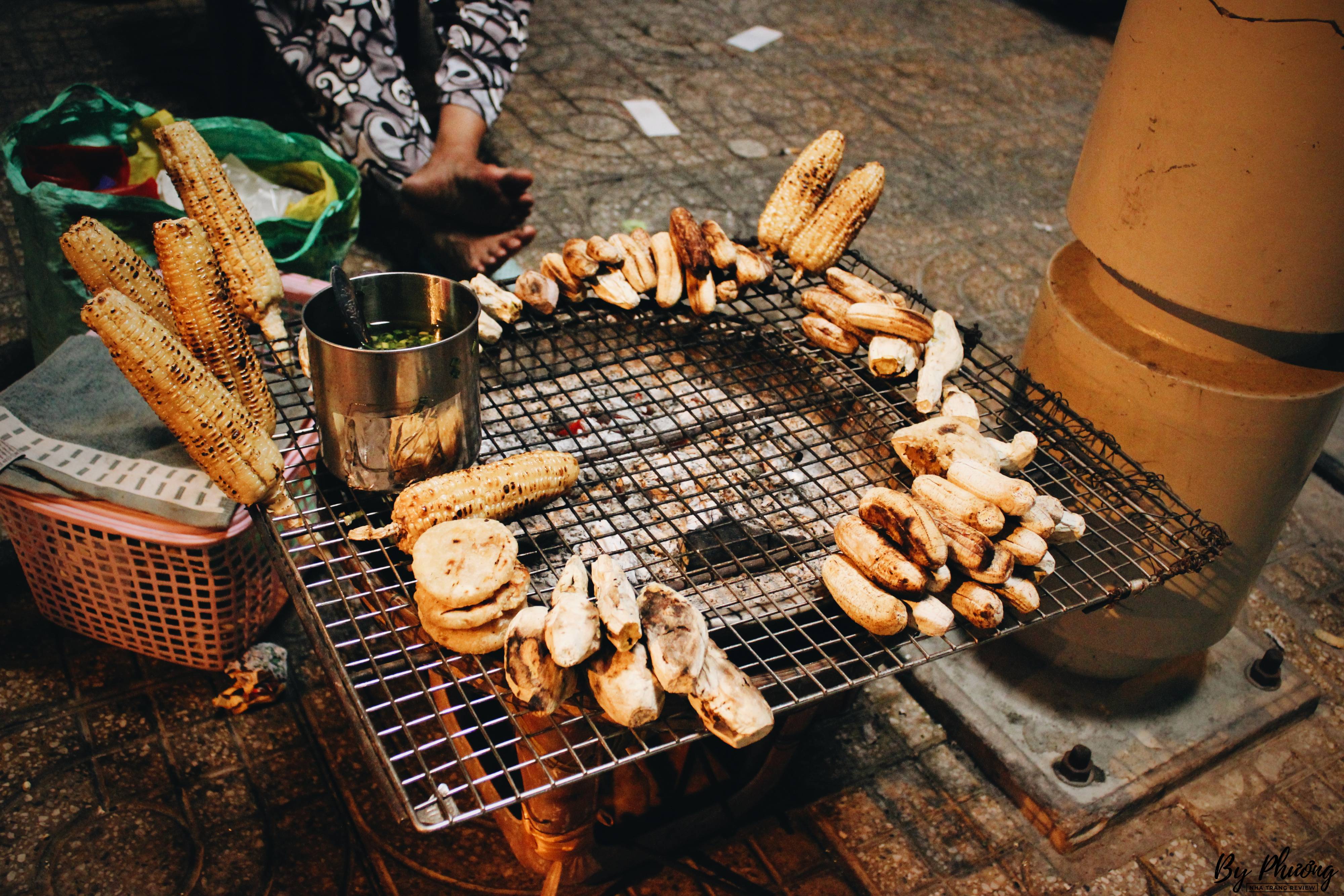 Mấy món này mùa hè ăn thì hơi không hợp, nhưng khi trời trở lạnh, gió về, cầm củ khoai lang nướng nóng hổi thơm lừng mùi khoai chín, lẫn với mùi than, mùi lớp vỏ cháy khen khét mới thấy thích làm sao. Còn về bắp nướng thì món này ở Nha Trang không quá cầu kì, chỉ cần quệt lên bên ngoài một lớp mỡ hành có ướp sẵn gia vị là đã thấy tuyệt ngon. Còn ai muốn thưởng thức vị ngọt tự nhiên của bắp nếp chín trên than hồng thì chỉ cần ăn không là được nhé