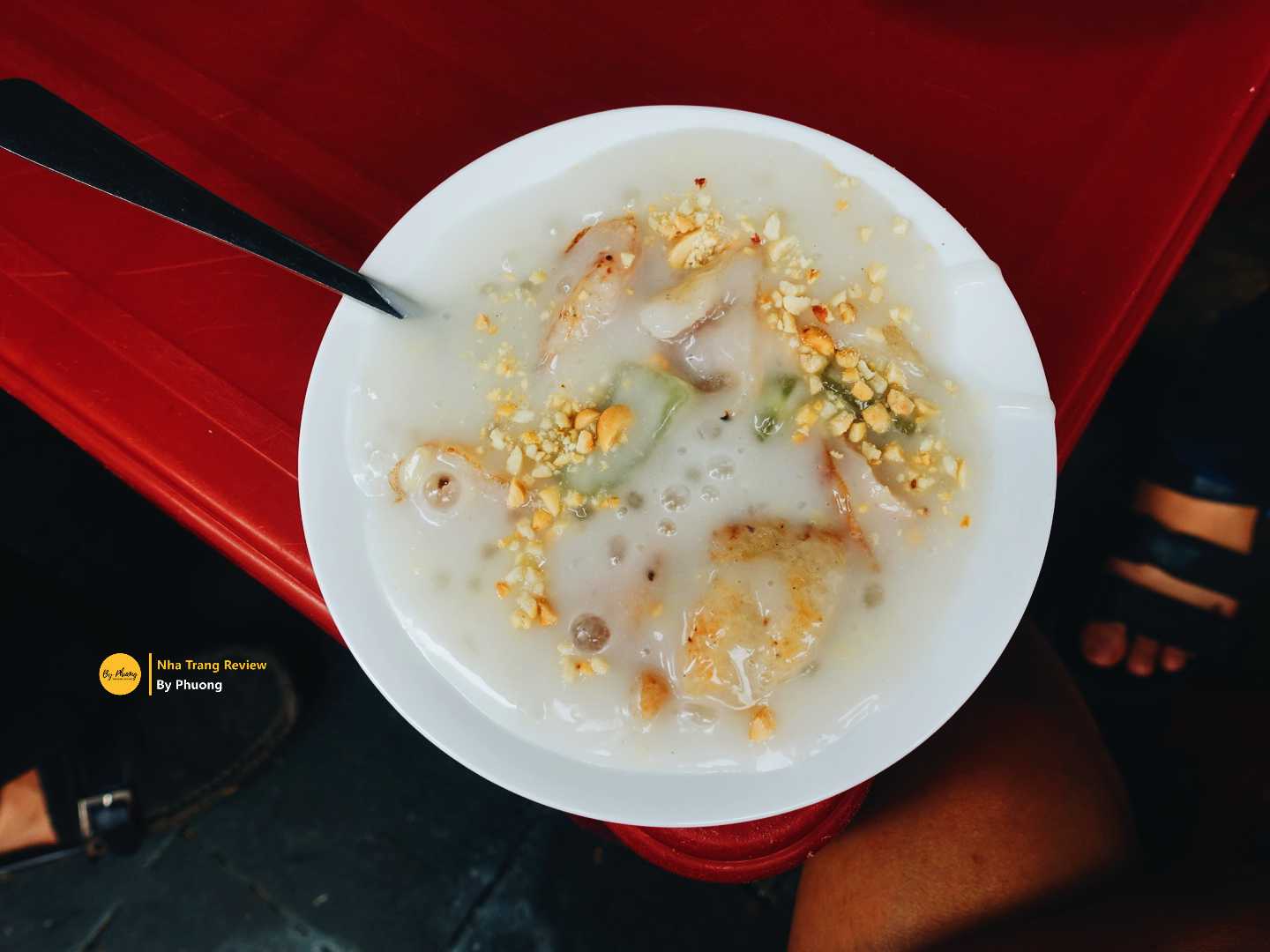 Đi ăn món này đừng bỏ qua tàu hũ đá nước cốt dừa, hơi bị thích! Ai không ăn ngọt thì nhớ dặn ít đường. Quán mà P giới thiệu bên dưới đây là quán có từ lâu đời và là quán nổi tiếng nhất ở Nha Trang. Đời học sinh chắc chưa ai là chưa từng lê la theo chúng bạn kéo vô quán này. Hồi trước đóng đô ở Ngô Sỹ Liên, sau mới dời về khu Hàn Thuyên. Dù là ở đâu, bà con cũng kéo đến tấp nập.