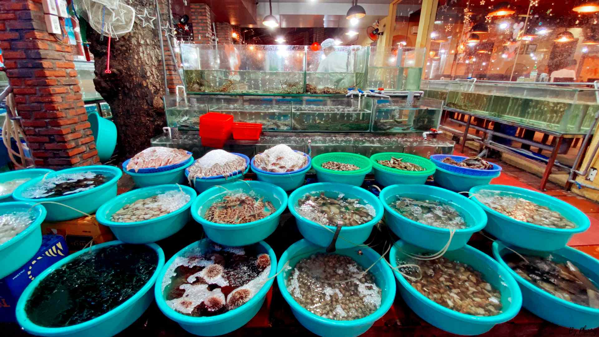 Nói chung thì bên này có hệ thống bể nuôi hải sản sống thuộc dạng lớn nhất trong các nhà hàng cùng tầm giá. Đủ các loại, nhìn mê li vậy nên chất lượng hải sản rất tốt, không có gì để bàn cãi (như trong hình là chỉ mới một góc thôi). Còn chế biến thì 90% là P hài lòng ^^