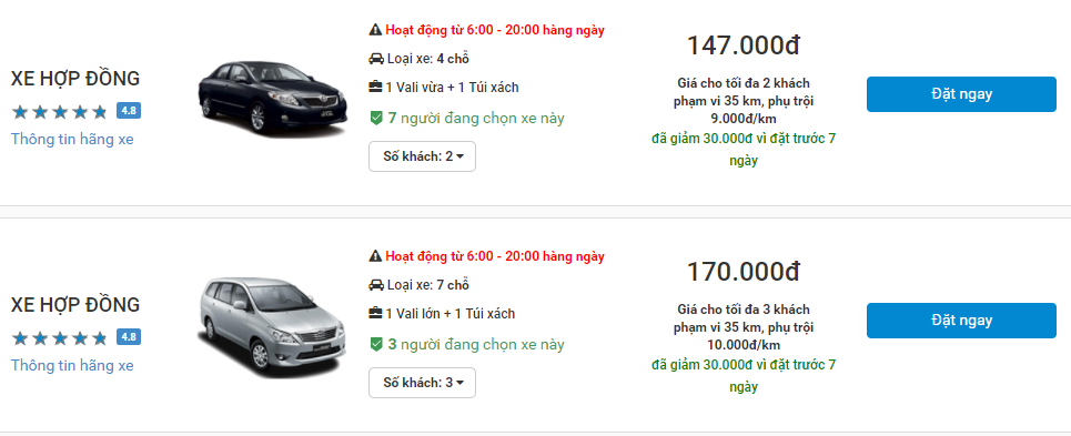 ** Đi Chung Taxi: Trong trường hợp bạn muốn di chuyển nhanh như taxi, nhưng giá mềm như giá xe bus thì sử dụng công cụ “Đi chung taxi” là hợp lí. Bạn chỉ cần nhập điểm đón khách, điểm trả khách, ngày đưa đón là web sẽ cho ra bảng giá và loại xe cho các bạn tự chọn. Ok thì click book rồi điền thông tin liên lạc vào là xong. Link đặt xe trực tuyến: https://bit.ly/2qA8bGF