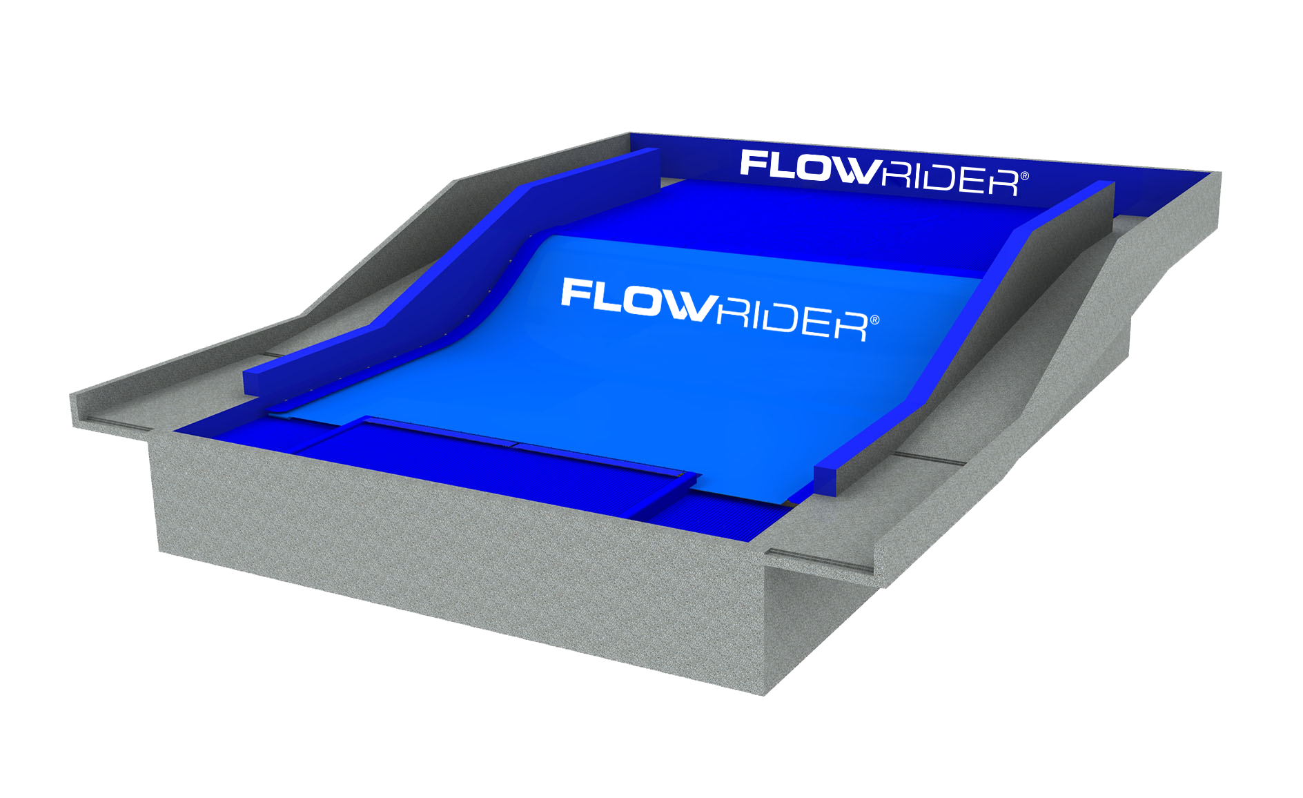 Flowrider nói nôm na là một thiết bị tạo sóng hồ bơi – bơm ngược dòng để tạo ra con sóng như sóng biển thật. Hệ thống này được bên Ana Marina nhập nguyên con từ Mỹ về, thuộc loại The FlowRider Double với 02 làn trượt đủ cho 02 người cùng chơi một lúc mà không sợ va vào nhau nhờ thanh chắn bằng phao nổi hình trụ tròn ngăn ở giữa (mô hình ví dụ bên dưới không có, nhưng ở ngoài thực tế có nha). Một số thông số kỹ thuật thú vị về con Flowrider này như sau: