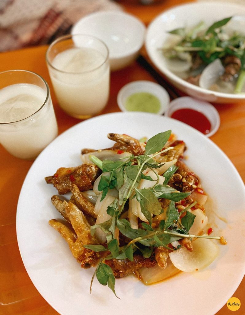 Mồi của quán thì cũng tùy, có món ngon món chưa. Nhưng nếu phải suggest thì P sẽ suggest món mực kho tiêu (dùng mực khô, chiên sơ sau đó kho với mắm tiêu mặn ngọt và hành tây – vị mặn mà rất hợp với nhắm bia). Ngoài ra một món khác P cũng mê nữa là gà quay (hay chiên gì đó lỡ quên shoy) ăn kèm bánh bao chiên. Món này đổ bê tông hơi bị chuẩn mọi người ạ!