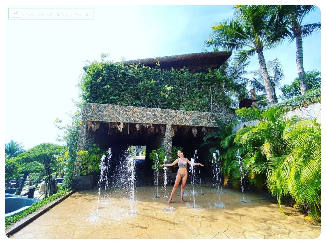 Ngoài ra ở đây còn có khu vực thác tắm khoáng cao 11m. Ai muốn nhìn toàn cảnh khu đồi thì có thể leo lên khu thác này, view đẹp mỹ mãn. Thác được thiết kế để mọi người có thể leo lên leo xuống nên không sợ đâu nhé, rất dễ đi (dù vậy cũng nên cẩn thận). Ngoài ra thì đứng dưới con thác để nước massage vai cũng thích.