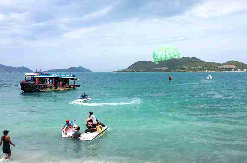 >> Tham gia các dịch vụ thể thao dưới nước :dù bay, Jetski, Phao chuối (Chi phí tự túc);