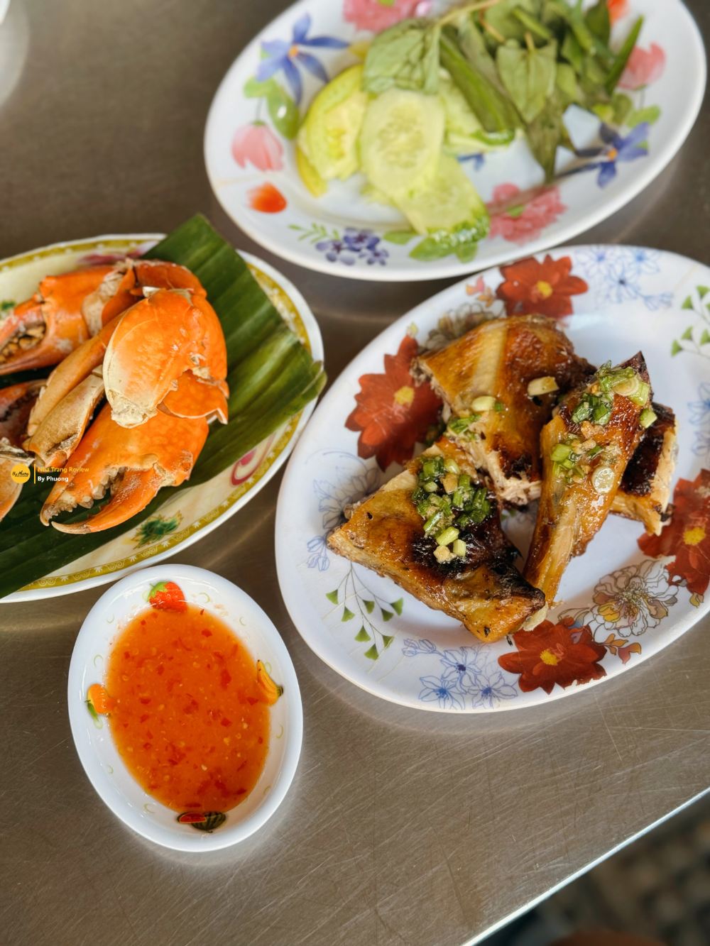 Đồ nướng: có một điều chắc chắn là cách nướng, bày biện của Lào với Cam nhìn hấp dẫn hơn Đông Lào nhà mềnh nhiều. Họ kẹp thịt các loại vào thanh tre và làm chín trên than hồng. Dù chưa biết là có ngon hay không thì nhìn không thể cầm lòng được. Mực con nào con nấy to hơn bàn tay người lớn, rồi cá nguyên con, đùi gà, tôm càng xanh…cứ gọi là siêu phẩm. Phương gọi sương sương cái đùi gà và càng cua loại lớn. Càng cua ngon, nhiều thịt nhưng hơi nhạt. Còn đùi gà nướng thì thật sự toẹt vời. Thịt chín óng ánh, mượt mà, được phết lên bên ngoài một lớp mỡ hành đã nêm nếm gia vị và gừng. Ta nói rất rất ngon, nhất định phải thử.
