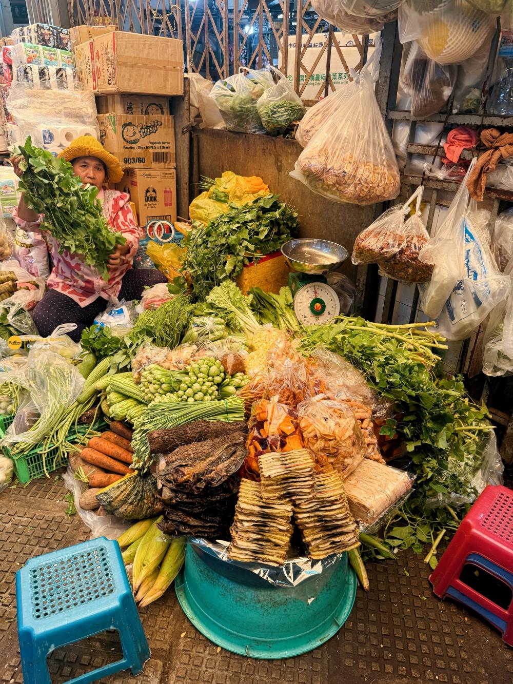 Nếu còn thời gian sau khi ăn uống thì đi dạo chợ cũng sẽ hay ho lắm đó. Sản vật bày bán khá là giống dưới miền Tây của mình. Quá trời các loại khô, lạp xưởng, bánh trái và rau củ. Mà khi đi chợ hay cái là dù không có cố tình tìm hàng quán liên quan tới người Việt nhưng đụng người biết nói tiếng Việt hơi bị nhiều. Mấy cô bán vòng thì có cô lấy chồng Việt Nam nên giao tiếp được tiếng Việt, chị bán quần áo thì biết chào hỏi bằng tiếng Việt, tới khi ăn chè thì chị chủ quán chè nói sõi tiếng Việt luôn. Mẹ chị là người Việt, sang Cam cách đây mấy chục năm rồi lấy chồng và sinh chị bên này. Chị tên Trang, bán hàng dễ thương lắm. Ai có đi Central Market thì có thể ghé ủng hộ đồng hương nha
