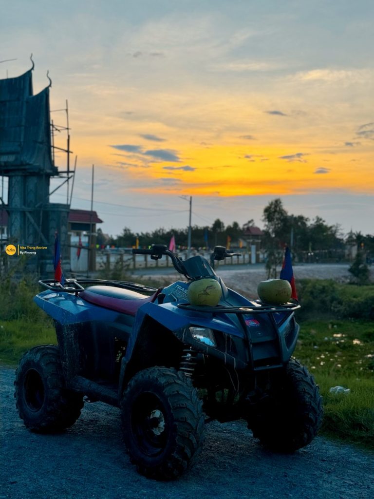 ATV là viết tắt của All Terrain Vehicle. Đây là loại xe bốn bánh có độ cân bằng tốt và độ bám khỏe. Xe này dành để đi đồi cát hoặc những nơi có địa hình phức tạp là y bài. Dù trước đây đã biết và tìm hiểu nhưng chưa thực sự lái qua bao giờ nên chỉ đặt tour ngắn để đi ngắm hoàng hôn. Giá tour lái ATV ở Phnom Penh có giá 35$/ người đã bao gồm đưa đón từ khách sạn đến điểm tập trung cách khu trung tâm tầm 10km và ngược lại.