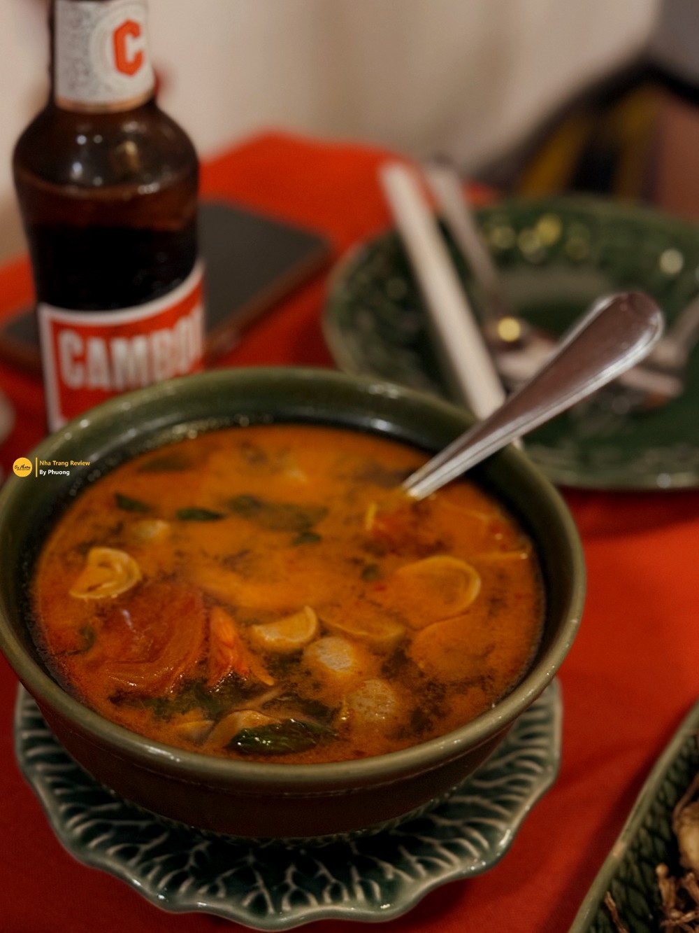 Giá trung bình từ 4$ tới 10$ cho một món. Thật sự là không đắt so với dịch vụ cũng như chất lượng đồ ăn tại đây. Nên thử qua String Been Salad nha, rất ngon. Bình thường Phương không ăn được đậu đũa sống nhưng cách bếp của Khmer Surin làm thì ăn được. Đậu sẽ cắt khúc vừa ăn, giã hơi dập chút và trộn với mắm, tôm khô, cà chua bi. Vị cực kì ngon và ăn với cơm rất hợp. Soup Tomyum hải sản cũng rất đáng ăn, ở đây nấu kiểu chua cay rất thanh chứ không kèm nước dừa nên không béo.